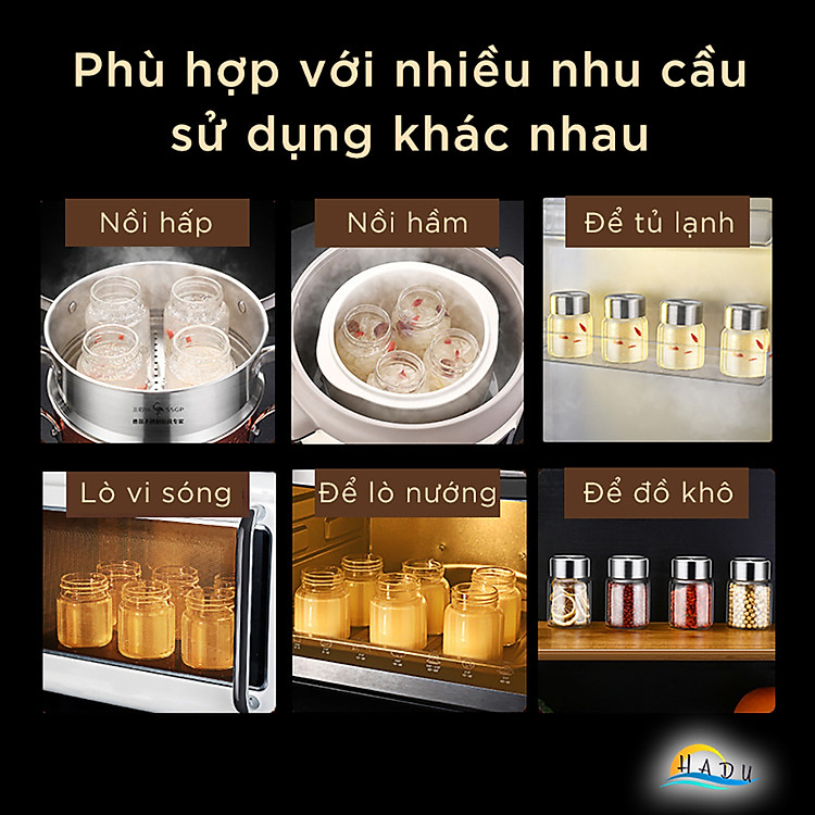 Phạm vi áp dụng: Chưng yến, đựng sữa chua, mật ong,...