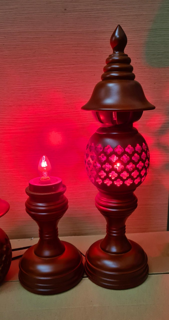 Cặp đèn thờ gỗ gụ cao 41 cm, đường kính 09 cm ,đèn lắp bóng điện bên trong thắp sáng, trang trí bàn thờ cúng của gia đình bạn.
