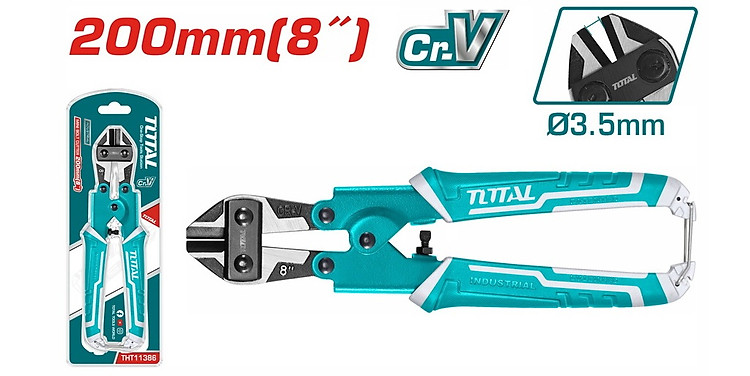 Kềm cộng lực đa năng 8" 20mm TOTAL THT11386 cấu tạo từ thép chuyên dụng CR-V ở đầu cắt và tay cầm được làm từ nhựa nhám giúp cầm nắm chắc chắn