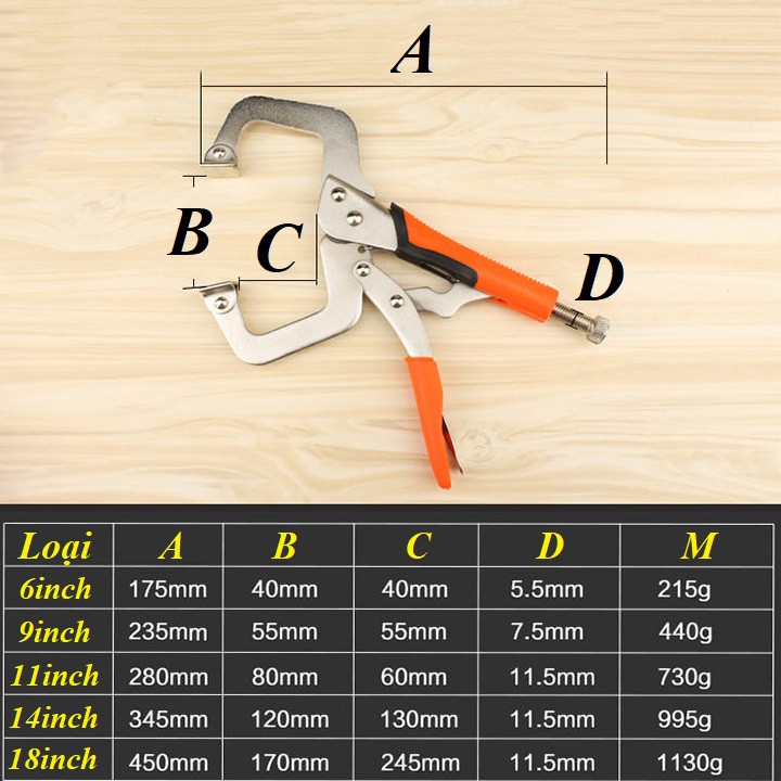 + Kẹp gỗ chữ C sử dụng như kèm bấm cường lực, gia tăng sức kẹp mạnh