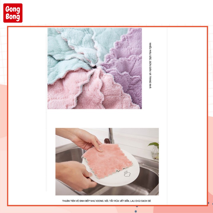 Khăn lau bếp đa năng siêu mềm mịn thấm hút 2 mặt khác màu khăn lau chén bát đĩa nhà bếp Gong Bong store