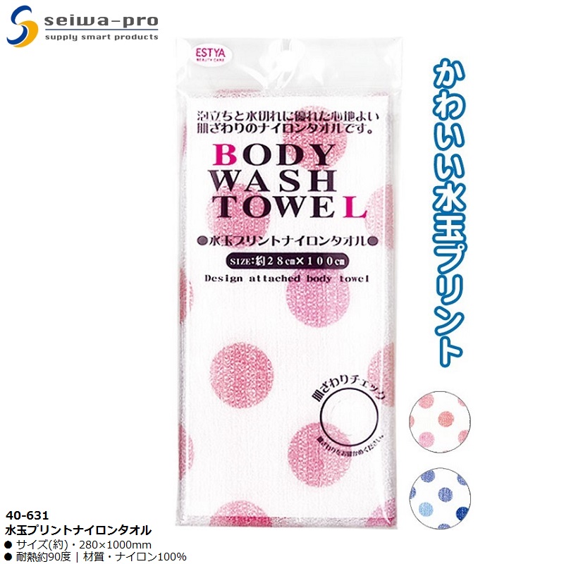 Khăn tắm tạo bọt Seiwa-pro chấm bi 28x100cmTHÔNG TIN SẢN PHẨM Xuất xứ: Nhật BảnMàu sắc: Màu hồng | Màu xanh(Giao ngẫu nhiên)Kích thước: 265×120×13mmChất liệu:100% Nylon bông xốp với khả năng...