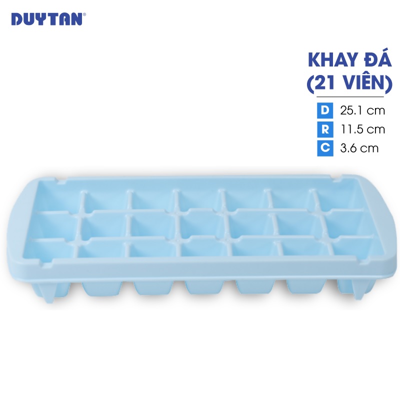 THÔNG SỐ CHI TIẾT + Thương hiệu: Duy Tân + Loại sản phẩm: Khay đá 21 viên + Kích thước: 25,1 x 11,5 x 3,6 cm + Chất liệu: Nhựa PP chính phẩm + Màu sắc: Trắng, Xanh Dương, Xanh Lá, Kem (Giao màu ngẫu nhiên) + Xuất xứ: Sản xuất tại Việt Nam Giá sản phẩm trên Tiki đã bao gồm thuế theo luật hiện hành. Bên cạnh đó, tuỳ vào loại sản phẩm, hình thức và địa chỉ giao hàng mà có thể phát sinh thêm chi phí khác như phí vận chuyển, phụ phí hàng cồng kềnh, thuế nhập khẩu (đối với đơn hàng giao từ nước ngoài có giá trị trên 1 triệu đồng).....