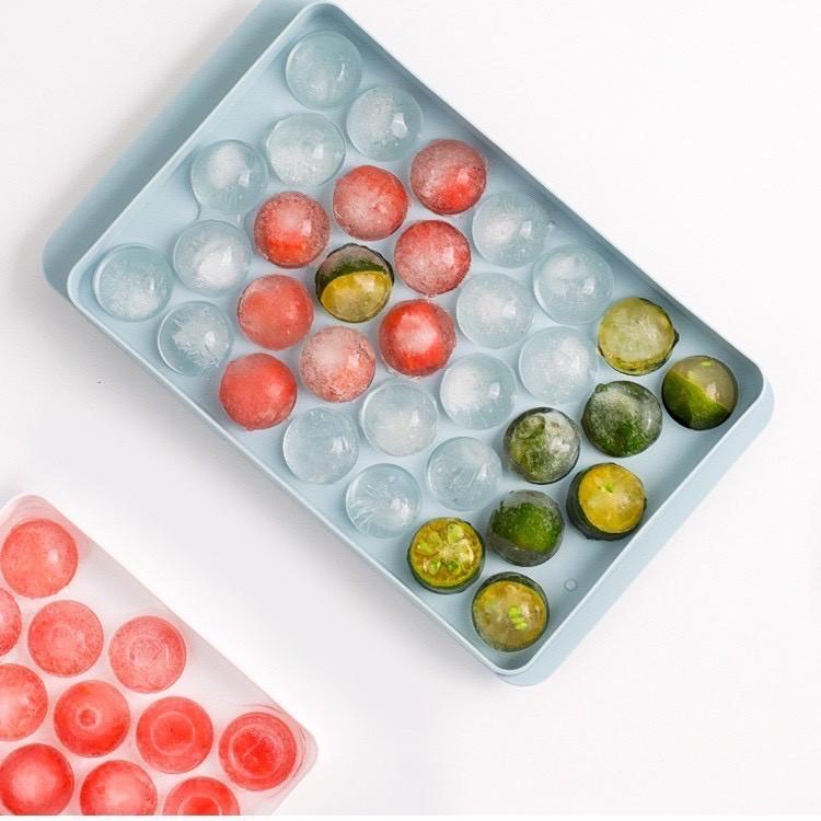 Khay Đựng Đá 33 Viên Tròn Có Nắp Đậy Làm Được Kem Đá Hoa Quả - King
