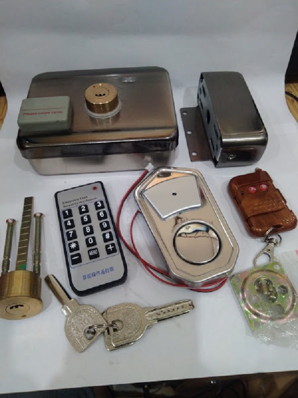 Khóa điện từ bao gồm: 1 Remote điều khiển, 1 bàn phím thao tác, 1 thẻ master, 3 chìa cơ.