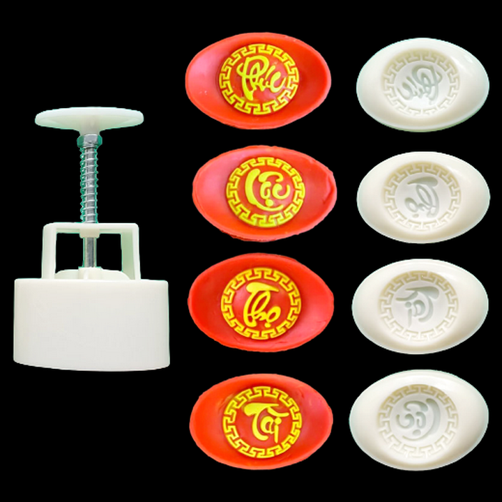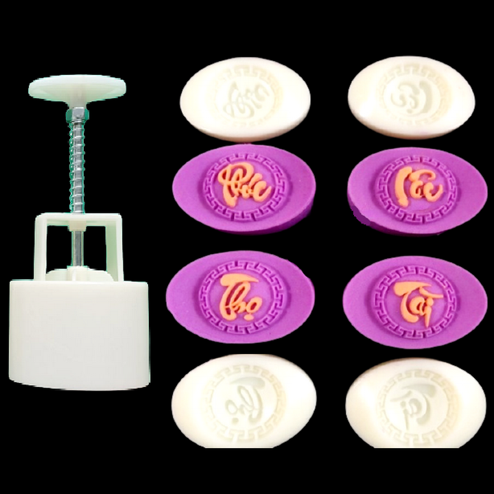 Khuôn trung thu lò xo, khuôn ép xôi 4 thỏi vàng Phúc Lộc Thọ Tài - Mã số 1024