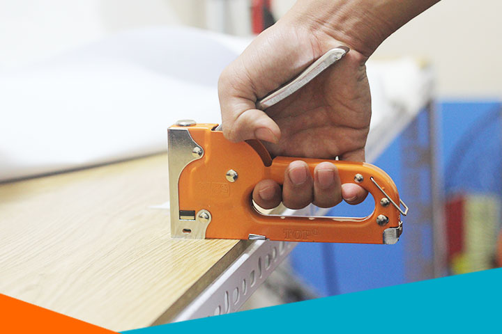 Để dụng cụ song song và sát với mặt phẳng cần bấm đinh