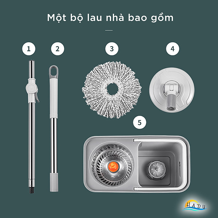 - Bộ lau nhà 360 được chế tạo có tính thẩm mĩ cao, dạy dặn, chắc chắn. (Khách cầm trên tay là thấy được độ cao cấp của em nó)