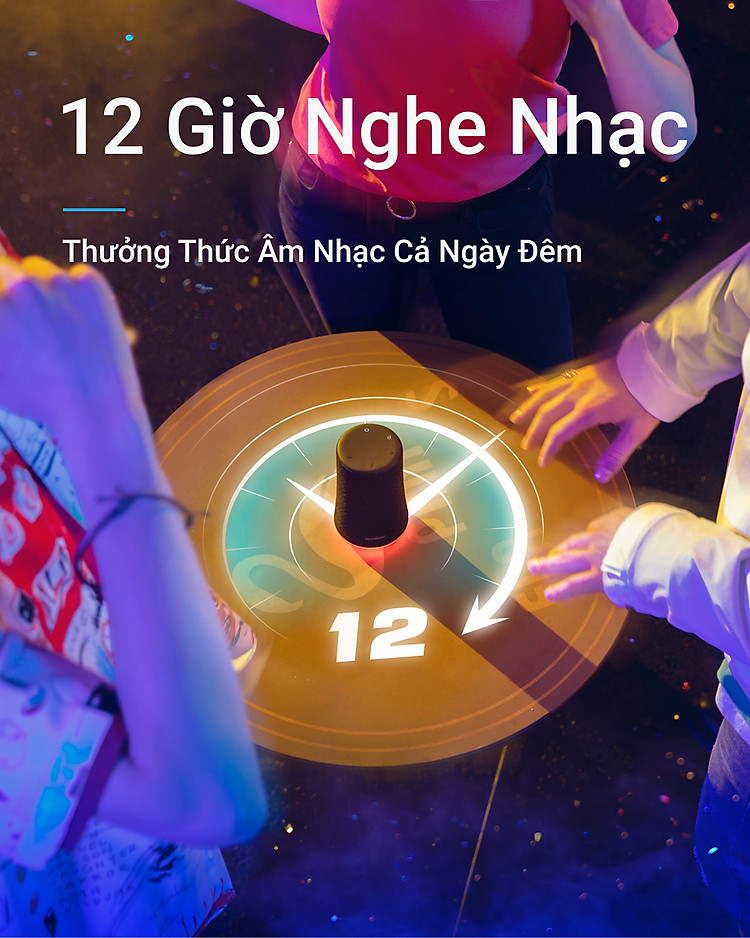 - Thời gian phát (thay đổi theo mức âm lượng, nội dung nhạc và đèn): 12 giờ