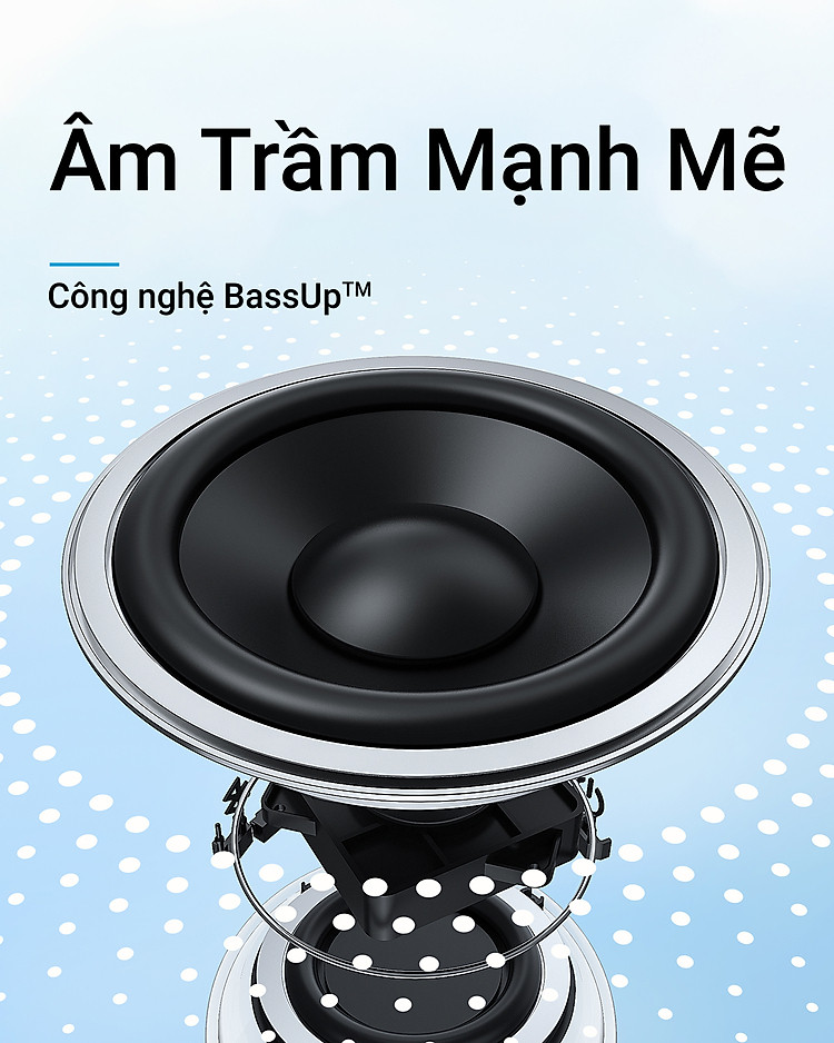 Công nghệ độc quyền tiến hành phân tích thời gian thực và nâng cao tần số âm trầm của âm thanh để âm thanh mạnh mẽ.