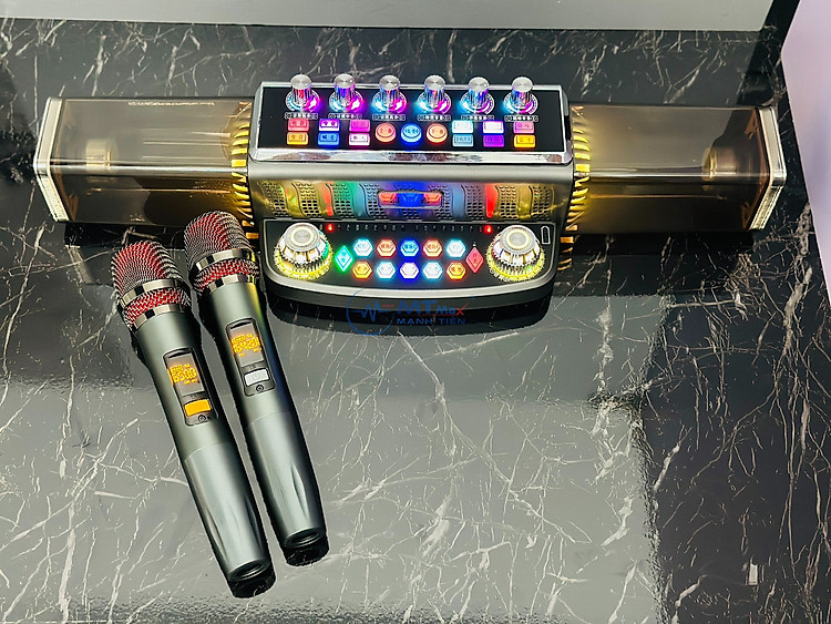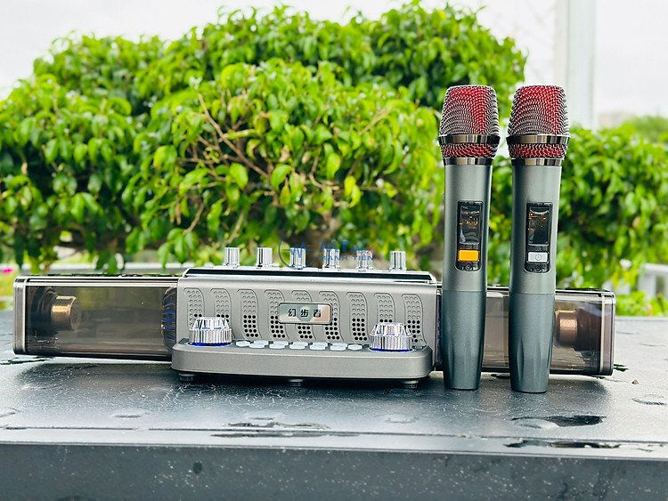 Sản phẩm này đi kèm với 2 micro không dây cao cấp và hỗ trợ 2 cổng vào micro, giúp bạn và gia đình tận hưởng những buổi hát karaoke và livestream chất lượng. Củ micro chất lượng giúp giọng hát của bạn trở nên bay bổng và rõ ràng hơn, vượt xa so với các loại micro rẻ tiền.