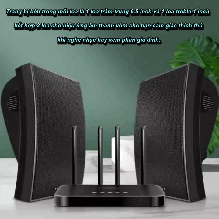 - Bộ Loa Âm Thanh được trang bị bên trong mỗi loa là 1 loa trầm trung 6.5 inch và 1 loa treble 1 inch cho âm thanh trầm và sắc nét kết hợp 2 loa cho hiệu ứng âm thanh vòm cho bạn cảm giác thích thú khi nghe nhạc hay xem phim gia đình.