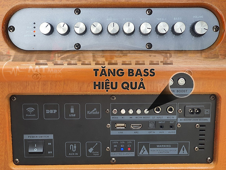 cùng đó là hệ thống loa treble mid 10cm được hãng MTMAX chọn lọc kĩ càng giúp tiếng ca được thanh thoát sáng rõ khi thể hiện các ca khúc yêu thích