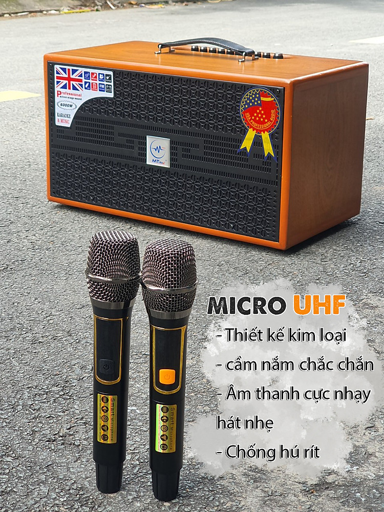 Đi kèm với loa là là micro UHF không dây cao cấp, cho người dùng cảm giác dễ hát, tiện dụng khi cầm nắm và tạo ra âm thanh karaoke tuyệt vời.