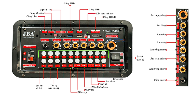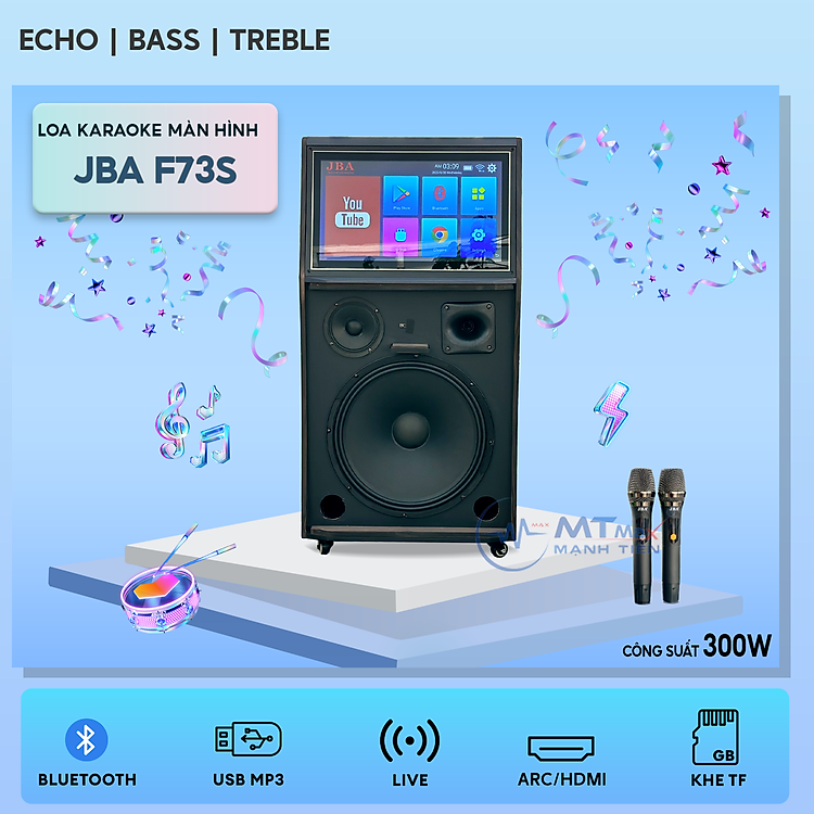 Loa Karaoke Màn Hình JBA F73S - Công Suất Lớn 300W Màn Hình Amoled Mượt Mà Bass Siêu Trầm 40Cm Âm Thanh Mạnh Mẽ Uy Lực Đi Kèm Cặp Micro Không Cao Cấp Bảo Hành 12 Tháng Tặng Kèm Bộ Đèn Led 5m