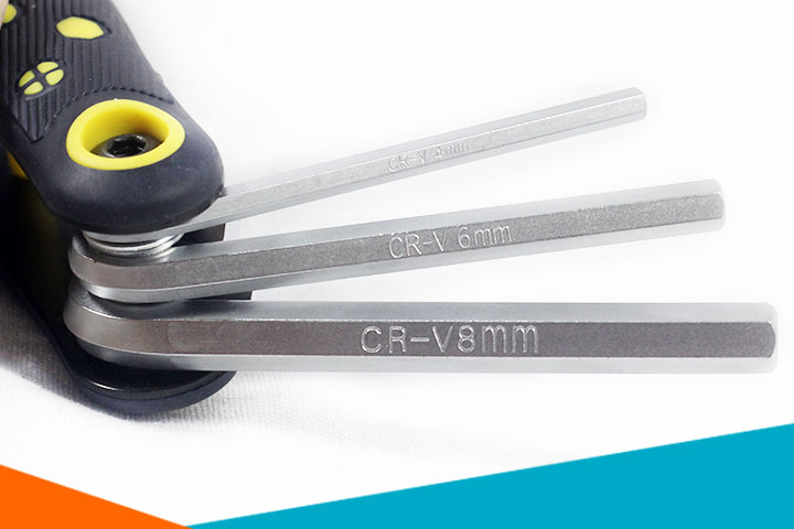 Bộ Lục Lăng Gập 8 Chi Tiết là bộ lục giác gập đơn giản mà gọn gàng. Bộ lục giác gập có 8 đầu thông dụng vặn vừa hết các loại vít và bu lông giác chìm thông dụng, kể cả giác chìm ở xe đạp. Bộ giạc giác gập có các trục lục giác bằng hợp kim không rỉ và bền, chuôi là cau su có gân chống trơn giúp gia tăng lực vặn rất tốt.