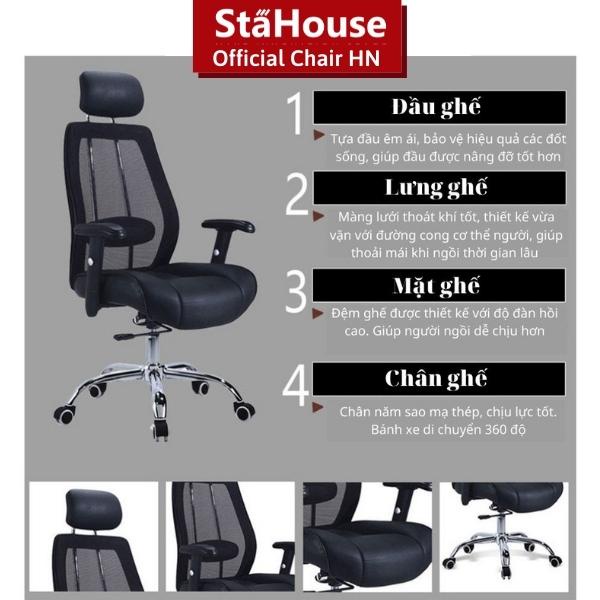 Ghế Công Thái Học Tựa Đầu Ngả Lưng Làm Việc Tại Nhà GVP713 Stahouse Official Chair HN