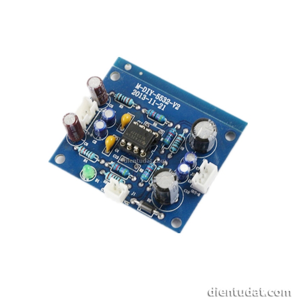 Mạch nâng tín hiệu âm thanh sử dụng chip NE5532 cho ngõ ra tín hiệu âm thanh gấp 5 lần tín hiệu ngõ vào phù hợp sử dụng cho các nguồn âm thanh có độ nhạy thấp. Sử dụng với dải điện áp rộng từ 12 - 35V rất phổ biến.