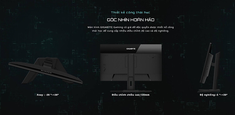 Màn hình cong GIGABYTE M32QC có chân đế được thiết kế công thái học để bạn có thể thoải mái điều chỉnh góc độ, chỉnh độ cao lên xuống và xoay màn hình với với độ xoay từ khoảng -5 độ đến khoảng 20 độ kết hợp với các loại cổng kết nối như HDMI, DP giúp bạn có được trải nghiệm chơi game tuyệt vời nhất.