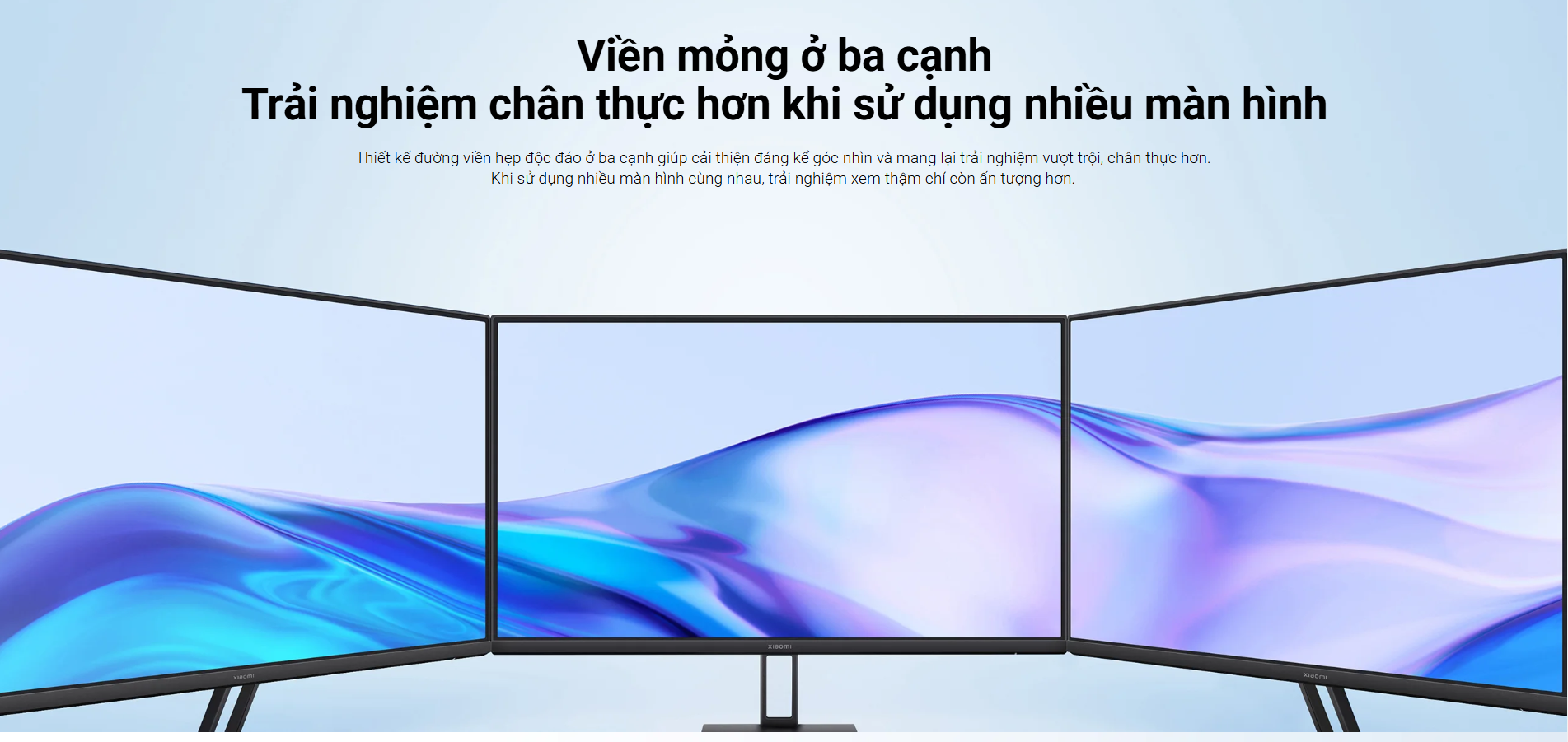Thiết kế đường viền hẹp độc đáo ở ba cạnh giúp cải thiện đáng kể góc nhìn và mang lại trải nghiệm vượt trội, chân thực hơn. Khi sử dụng nhiều màn hình cùng nhau, trải nghiệm xem thậm chí còn ấn tượng hơn.