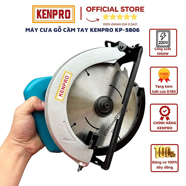 Máy Cưa Gỗ Cầm Tay KENPRO KP-5806 là dòng máy cưa gỗ,cưa đĩa cầm tay dùng để cắt xẻ gỗ dạng tấm ván,gỗ cốp pha...chuyên dụng trong thi công xây dựng,chế tạo đồ gỗ,nội thất,cắt xẻ gỗ đóng thùng hàng,DIY...