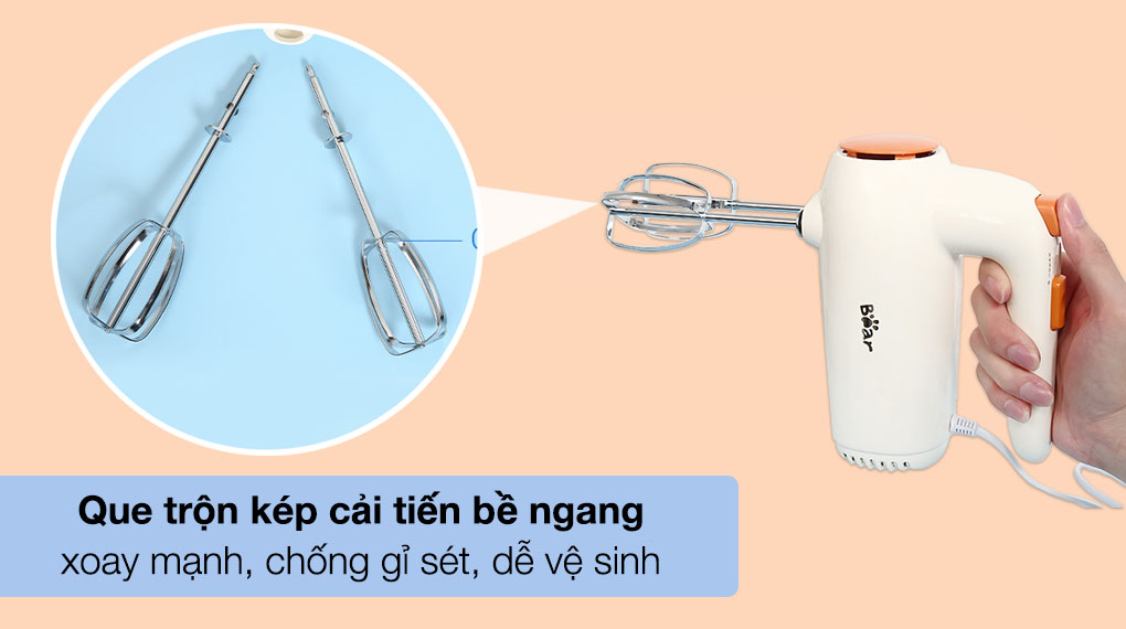 Máy đánh trứng cầm tay Bear DDQ-B01K1 là gia dụng đắc lực của các bà nội trợ, giúp cho việc nấu nướng, làm bánh trở nên nhẹ nhàng thoải mái, dễ dàng tạo ra những món ăn thơm ngon cho cả gia đình.