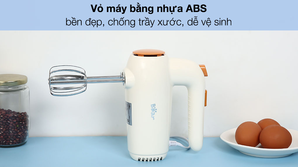Vỏ máy đánh trứng sử dụng chất liệu nhựa ABS bền đẹp, an toàn, dễ dàng vệ sinh và lau chùi sau khi sử dụng. Bên cạnh đó, máy còn có khả năng chịu lực tốt, kháng vỡ, chống trầy xước, giúp bạn yên tâm cầm nắm và tạo sự thoải mái nhẹ nhàng cho đôi tay.