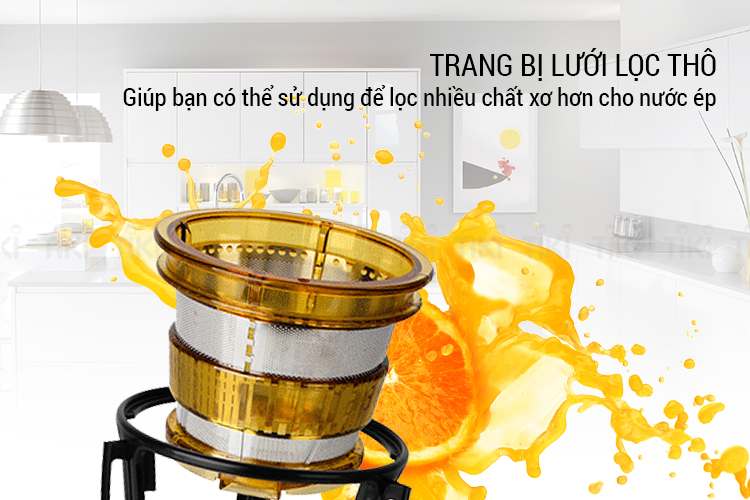 Máy được trang bị lưới lọc thô với mắt lưới lớn hơn lưới lọc tinh giúp bạn có thể sử dụng để lọc nhiều chất xơ hơn cho nước ép. Nhờ trang bị lươi lọc này, bạn sẽ dễ dàng pha chế nước ép trái cây có độ đặc sệt hơn từ trái cây mềm hoặc trái cây có bã.