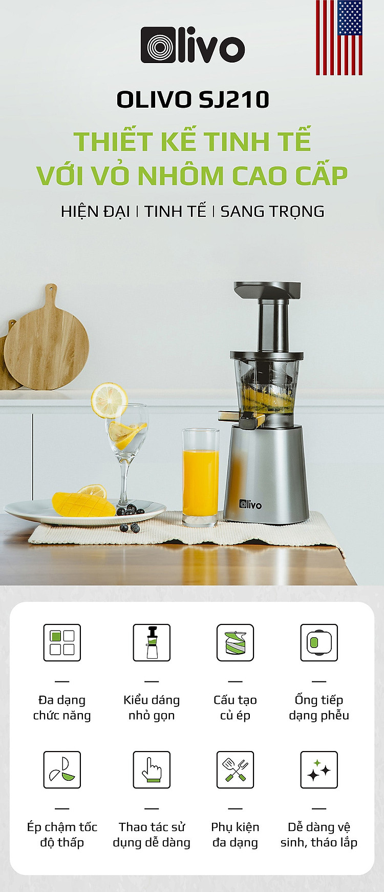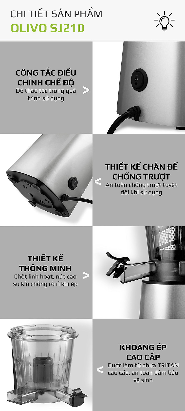 Giới thiệu Máy Ép Chậm, Máy Ép Hoa Quả Olivo SJ210 - Ép Kiệt Đến 97% - Động Cơ 200W - Thương Hiệu Mỹ - Hàng Chính Hãng