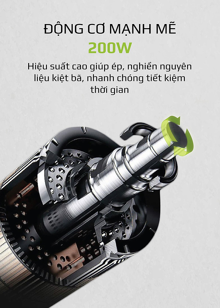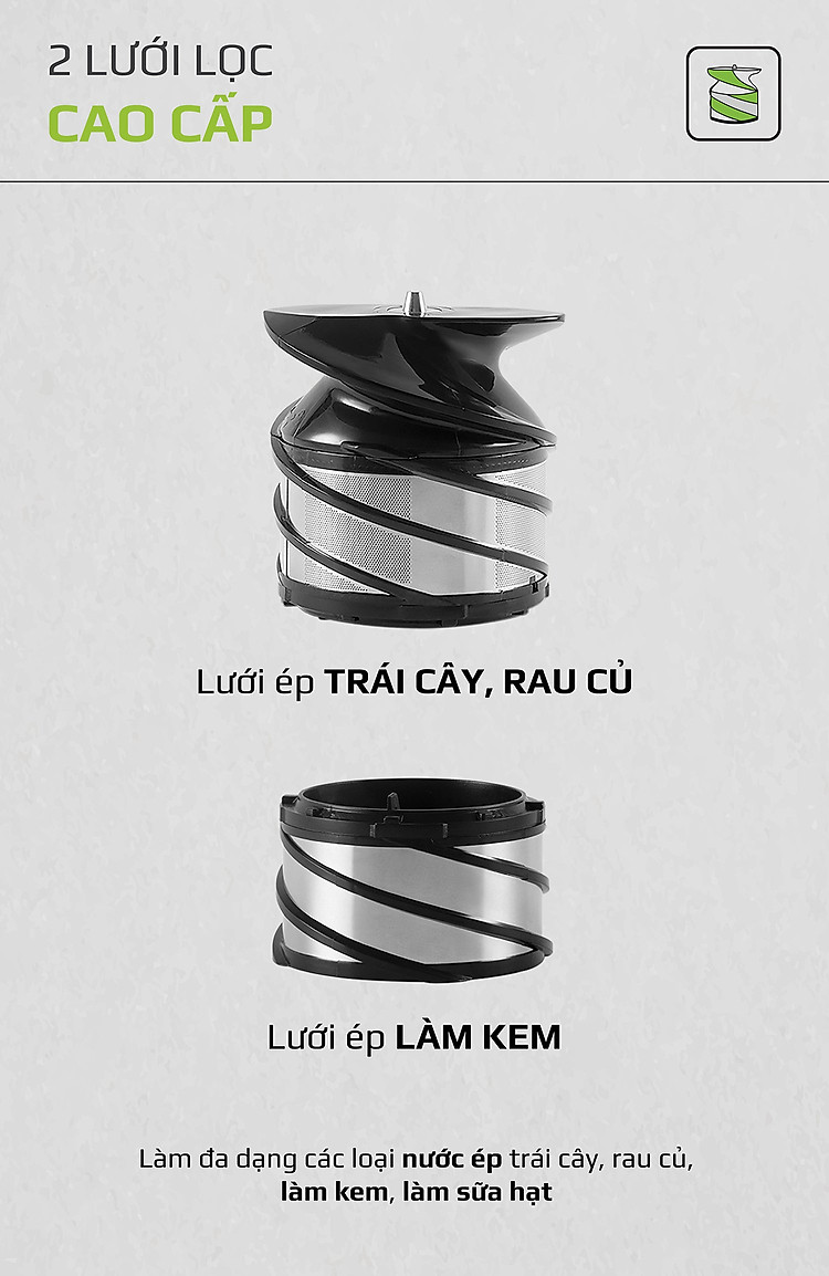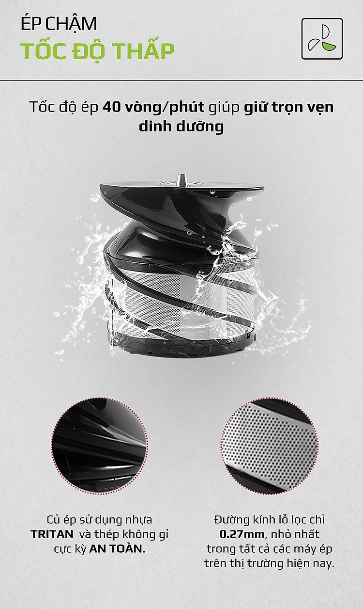 - Tốc độ ép chỉ 40 vòng/phút giúp