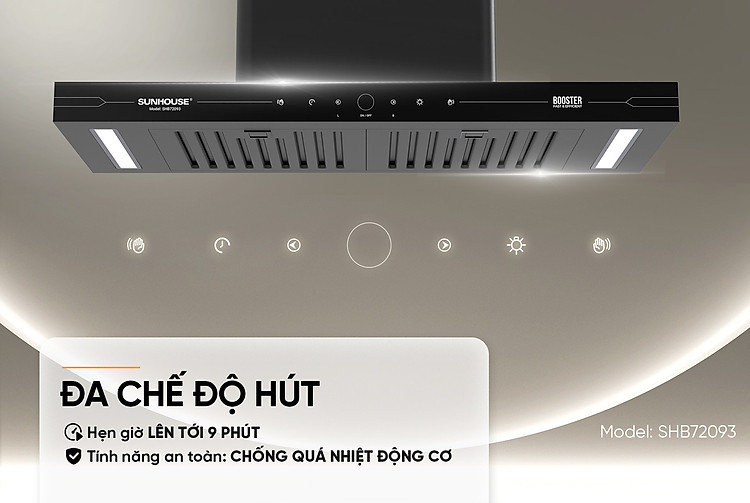 Tính năng hẹn giờ lên đến 9 phút trên máy hút mùi SUNHOUSE SHB72093 mang đến sự tiện lợi tối đa, cho phép người dùng dễ dàng cài đặt thời gian hoạt động mà không cần theo dõi hay can thiệp liên tục. Sau khi hết thời gian được thiết lập, máy sẽ tự động tắt, vừa đảm bảo hiệu suất hút tối ưu, vừa tiết kiệm điện năng hiệu quả. Đây là giải pháp thông minh, giúp bạn thoải mái tận hưởng không gian bếp mà không phải lo lắng về việc vận hành thiết bị.