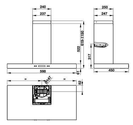 – Kích thước sản phẩm: 598R x 450S x 619 – 1150C mm