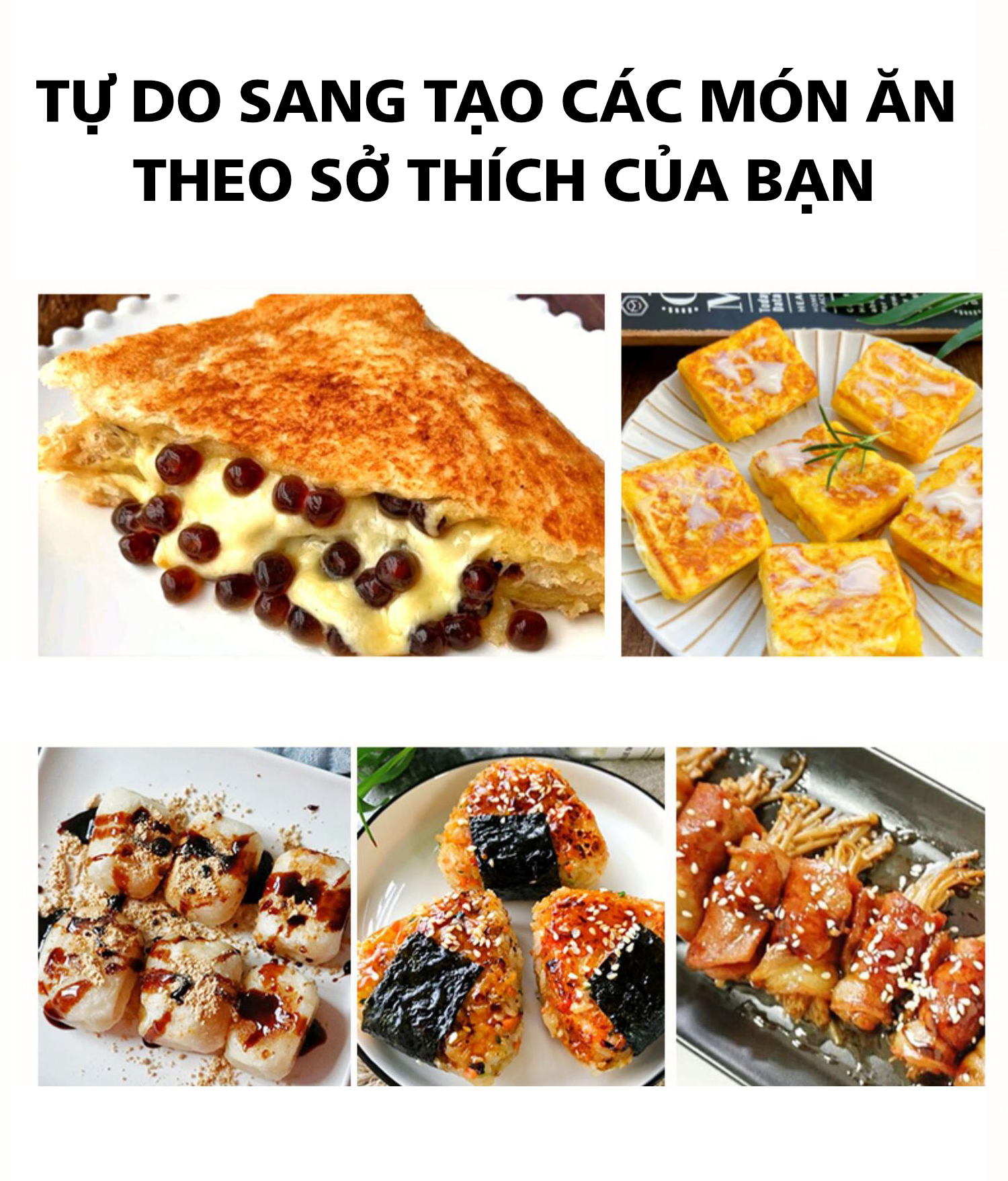 Với chiếc máy đa năng này, bữa sáng của cả nhà sẽ đa dạng và cực kỳ hấp dẫn. Khuôn bánh chống dính cực tốt, nên các mẹ ko cần cho thêm dầu mỡ nha. Nướng rất nhanh, chỉ 3 phút là chín. Sử dụng nguồn điện 220V thông thường. Nhỏ gọn, tiện mang theo khi đi chơi, đi du lịch,
