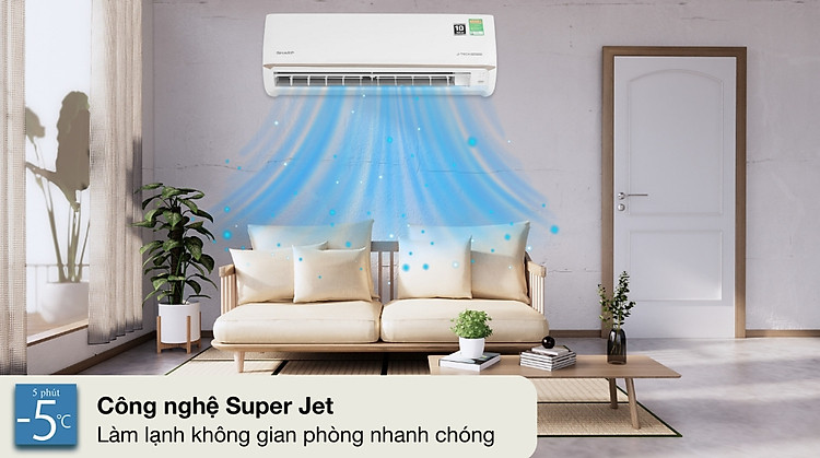 - Công nghệ Super Jet làm lạnh nhanh, giúp thổi luồng khí mát mạnh mẽ và lan tỏa đều khắp không gian mang lại hơi lạnh tức thì, đặc biệt hữu ích trong những ngày nắng nóng gay gắt hoặc khi cần làm mát phòng một cách nhanh chóng và hiệu quả.