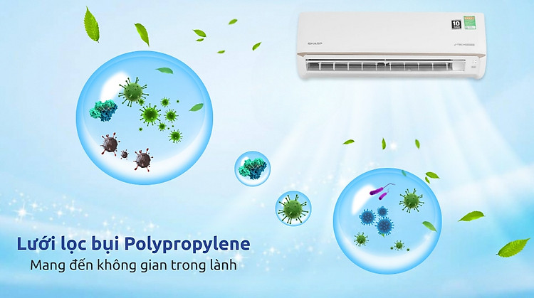 Máy lạnh Sharp Inverter 1 HP AH-X10CEWC là lựa chọn phù hợp cho các không gian nhỏ dưới 15m² cần một giải pháp làm mát hiệu quả, đồng thời đề cao yếu tố sức khỏe và chất lượng không khí. Sản phẩm được trang bị lưới lọc bụi polypropylene và các chế độ gió nhẹ nhàng giúp tạo môi trường sống trong lành, an toàn cho mọi thành viên trong gia đình.