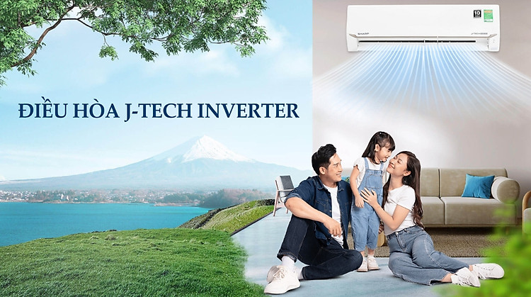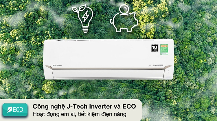 - Công nghệ J-Tech Inverter kết hợp Eco – kiểm soát điện năng tiêu thụ hiệu quả, giúp máy hoạt động ổn định và tiết kiệm.