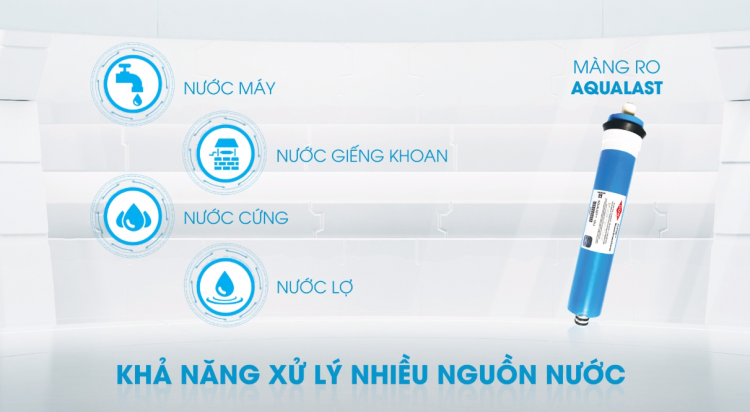 • Có khả năng xử lý nhiều nguồn nước: nước máy, nước giếng khoan, đặc biệt nước có TDS cao (nước lợ)