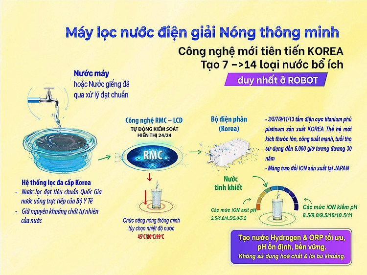 03 Chuẩn Vàng Của Máy lọc nước điện giải iON kiềm ROBOT