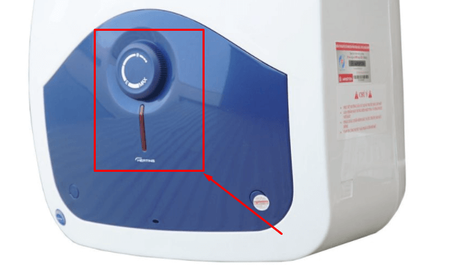Nút chỉnh nhiệt độ máy nước nóng Ariston BLU 15 R 2.5 FE 15L được thiết kế ngay trên mặt trước của máy, giúp bạn dễ dàng quan sát và thao tác điều chỉnh mức nhiệt sao cho phù hợp với nhu cầu của bản thân. Ngoài ra, máy còn có đèn báo thiết bị đang hoạt động để bạn tiện theo dõi.