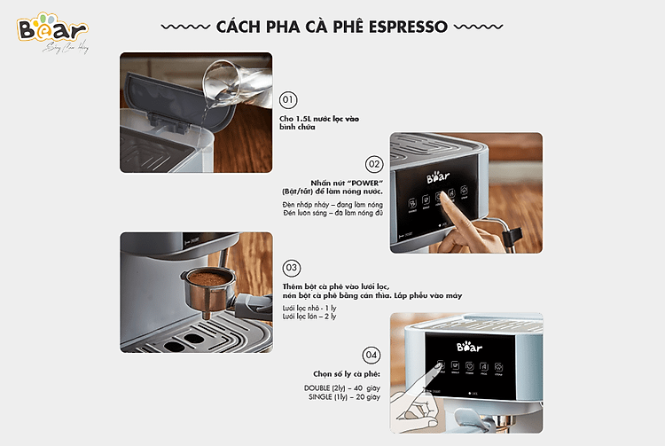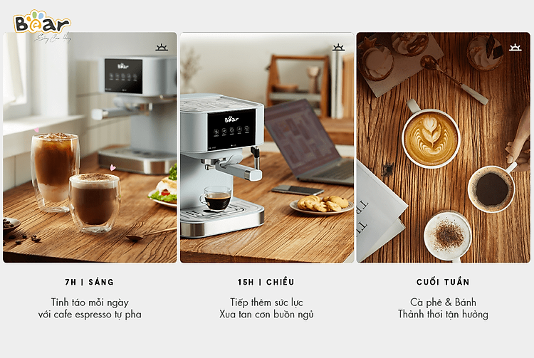 Tận hưởng một ly cà phê thơm ngon với Máy Pha Cà Phê Bear CF-B15V1 mỗi ngày, sản phẩm có thiết kể sang trọng phù hợp với mọi không gian sống. Cùng Bear trải nghiệm ngay những ưu điểm nổi bật cả về thiết kế lẫn tính năng của Máy Pha Cà Phê Bear CF-B15V1 ngay nhé!