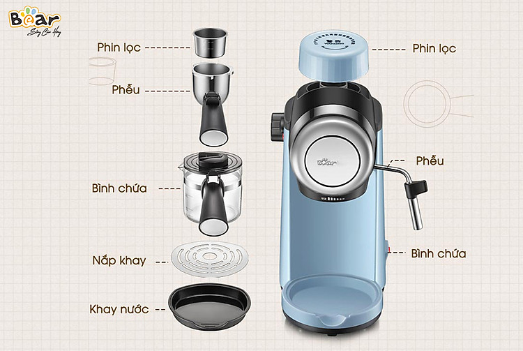 Bộ máy pha cà phê espresso Bear CF-B02V1 (KFJ-A02N1) gồm có