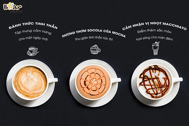 Để ly cà phê trở nên hấp dẫn hơn, máy pha cà phê Bear còn tích hợp thêm vòi đánh sữa tạo bọt như các máy pha cà phê chuyên nghiệp. Từ đó dễ dàng sáng tạo với cà phê tạo hình như cà phê latte, cappuchino, mocha,