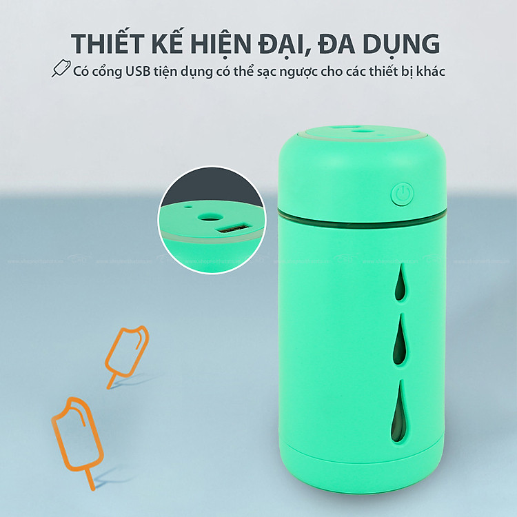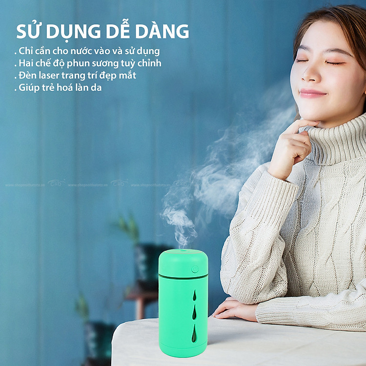 Hướng dẫn sử dụng: Lắp ráp các phần theo hướng dẫn trên bao bì, cho nước tinh khiết vào bên trong, kết nối với nguồn USB và nhất nút khởi động.