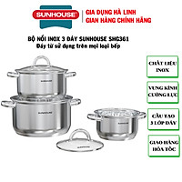 Bộ Nồi Inox 3 Đáy SUNHOUSE SH335 16, 20, 24 cm