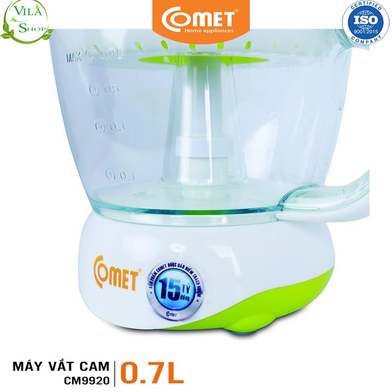 - Máy vắt cam COMET - CM9920 thiết kế tiện lợi, dễ sử dụng và nhưng không kém phần sang trọng, được chế tạo bằng loại nhựa AS trong suốt cao cấp an toàn khi tiếp xúc với thực phẩm, giúp bạn dễ dàng quan sát lượng nước trái cây bên trong khi đang vắt hoặc khi sử dụng.