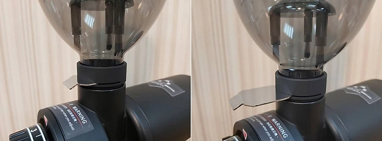 Cần gạt ngăn cà phê ngay bên dưới phễu đựng cà phê. Giúp bạn điều chỉnh lượng hạt cà phê rơi xuống máy xay giúp bột cà phê đều hơn và giảm khả năng bị kẹt.