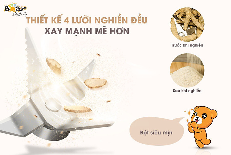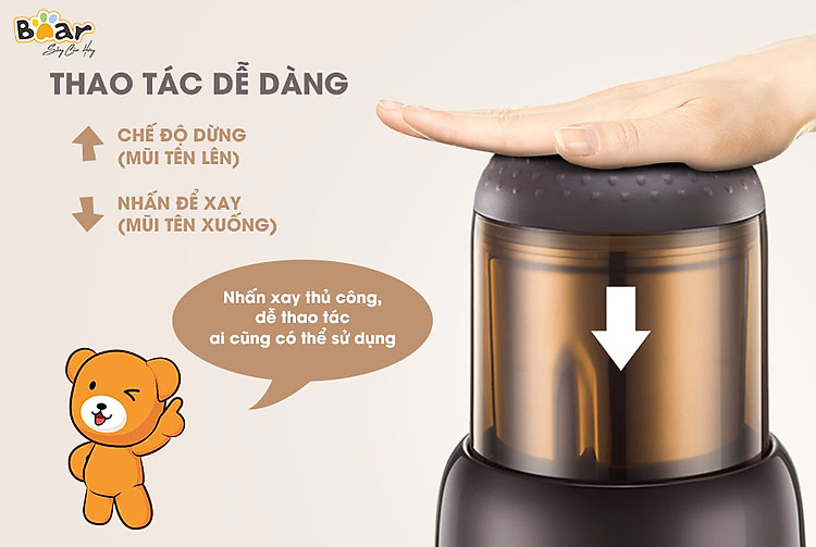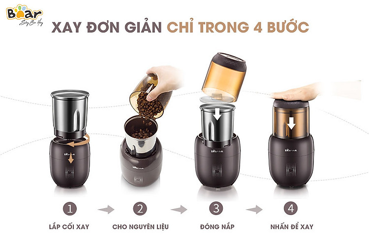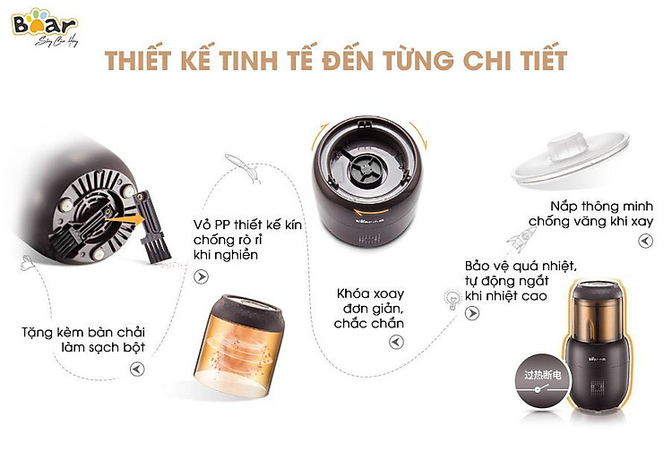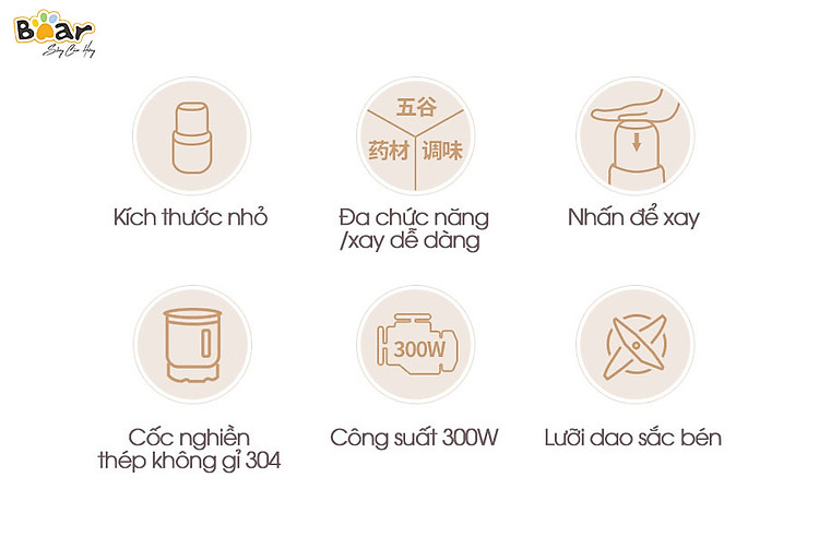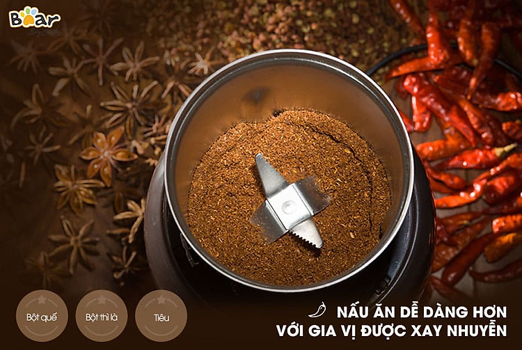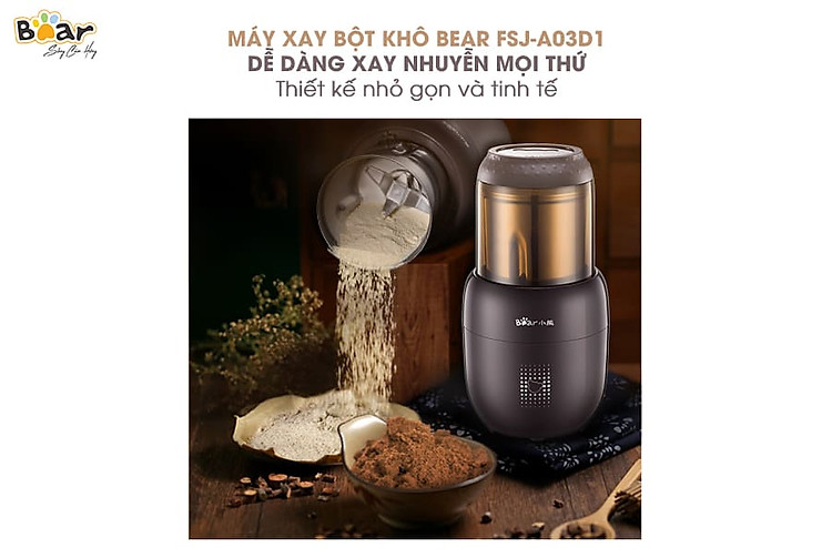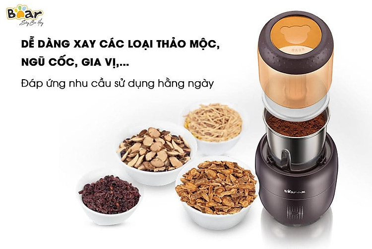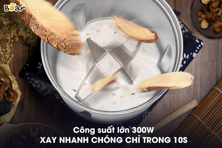 Máy xay bột khô Bear với công suất 300W và lưỡi dao sắc bén cho phép bạn xay nhuyễn nhiều loại thực phẩm khác nhau, thao tác tiện lợi chỉ với một cái ấn tay là có thể khởi động tính năng xay thực phẩm. Trải nghiệm ngay sản phẩm máy xay bột gia đình chính hãng Bear.