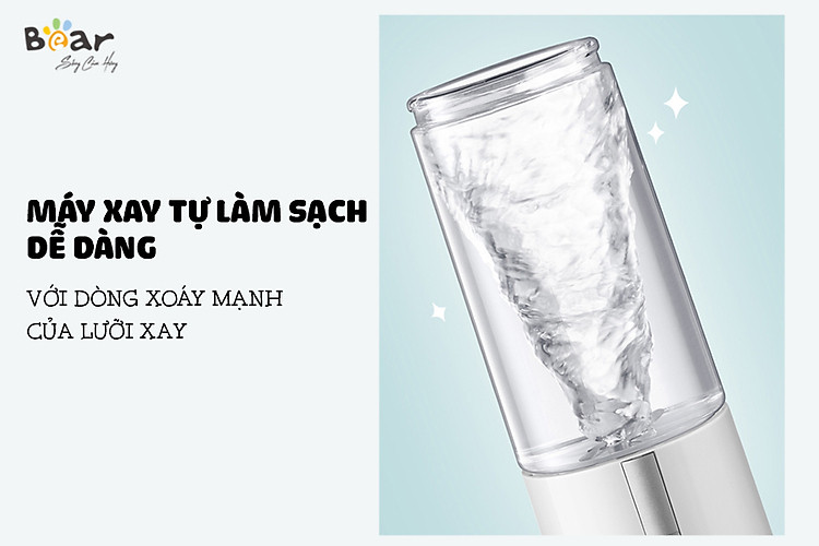 Mọi chi tiết trên máy xay cầm tay Bear đều được thiết kế vô cùng tinh tế với phần thân chống nước hoàn toàn, quai silicon giúp bạn dễ dàng cầm máy và đế máy có phần chống trượt, giúp quá trình xay của bạn được cố định, tránh rung lắc tuyệt đối. Đặc biệt hơn, sau khi xay, bạn chỉ cần đổ nước lọc vào máy, sau đó nhấn nút xay, máy sẽ tự làm sạch dễ dàng với dòng xoáy mạnh từ lưỡi xay.
