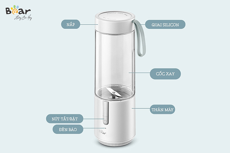 Máy xay sinh tố mini Bear có thiết kế hình trụ, màu sắc nhã nhặn, tinh tế; cốc xay có dung tích 350ml; trọng lượng máy nhẹ, giúp bạn dễ dàng đặt máy trong túi xách, balo để mang đi đến bất cứ nơi đâu. Bên cạnh đó, máy xay vận hành bằng pin sau khi được sạc điện, giúp bạn có thể tiết kiệm thời gian, công sức khi sử dụng máy. Do đó, máy xay sinh tố cầm tay Bear không chỉ nhỏ gọn, tiện lợi mà còn phù hợp sử dụng cho mọi đối tượng.