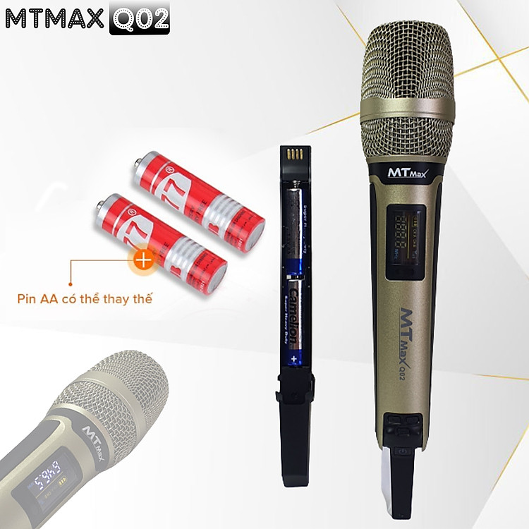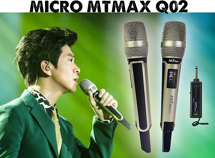 Để hát Karaoke thả ga, một chiếc micro hiện đại, tiện nghi, cho chất giọng hay là không thể thiếu. Dòng micro không dây MTMAX Q02, kết nối không dây đơn giản, nhanh chóng, đầu thu sử dụng pin sạc dung lượng lớn đảm bảo hoạt động bền bỉ, hát thả ga mà không cần sạc quá nhiều lần. Micro hát Karaoke MTMAX Q02 là dòng sản phẩm cao cấp hiện nay mà bất cứ gia đình, quán hát hay các cuộc vui chơi không thể thiếu.